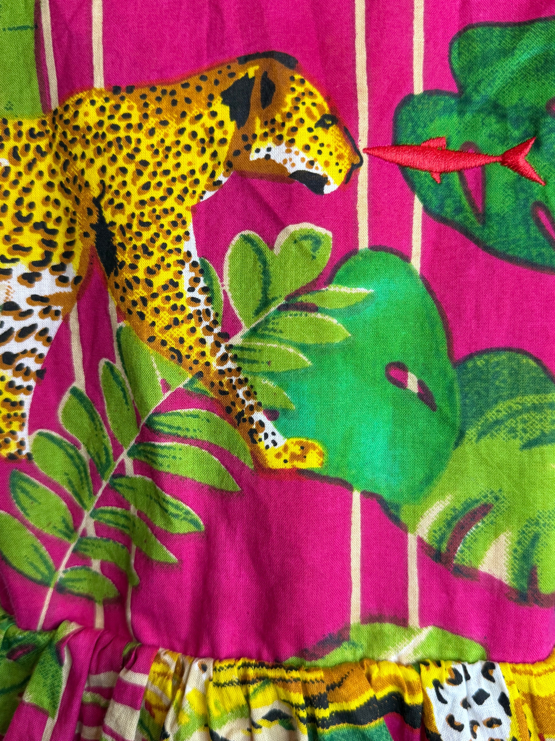 Experience endless joy with The Angelfish Dress! Embrace the vibrant and delightful prints, showcased through a stylish cross over bodice and gathered skirt. With a soft bright coloured polycotton lining, this party dress is perfect for twirling and spinning at all your summertime events. Get ready for a breezy, summery look that will leave you feeling radiant.