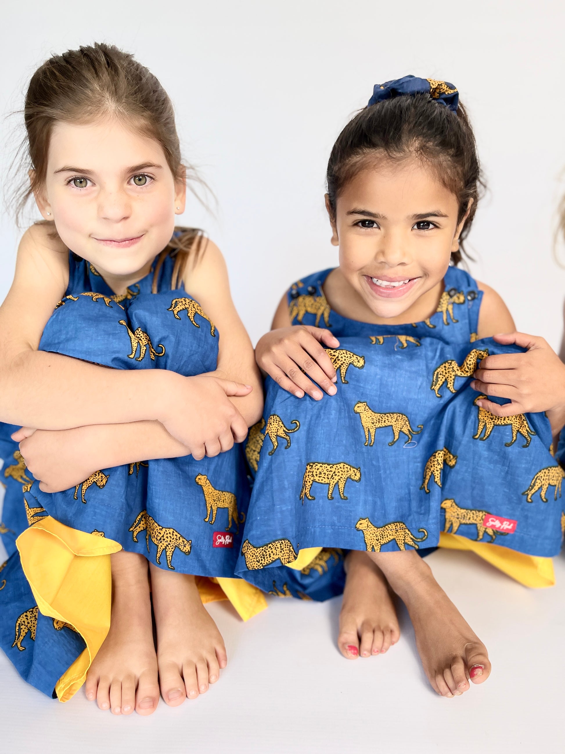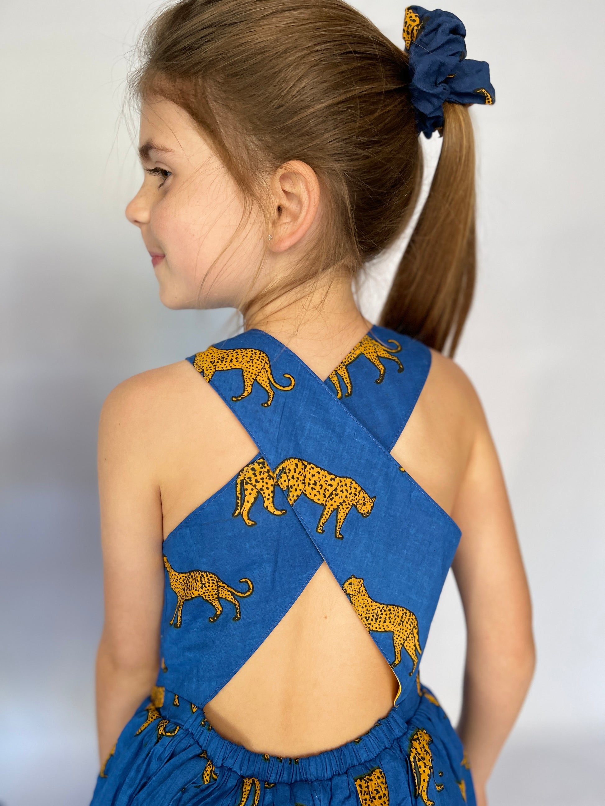 Girls Criss Cross back Dress - Royal Blue Leopard