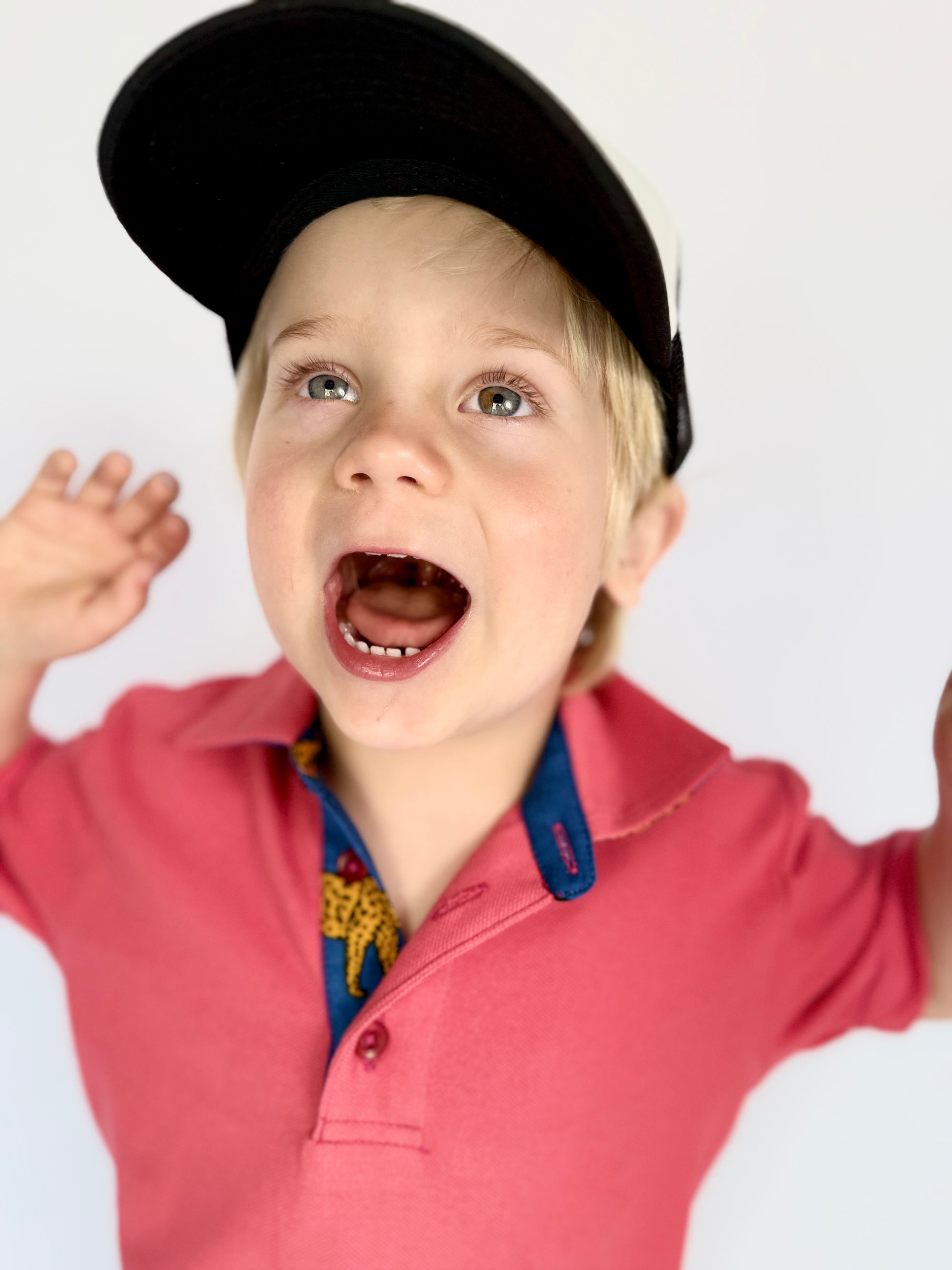 Boys Golfer - Coral - Navy w Orange Leopards Insert