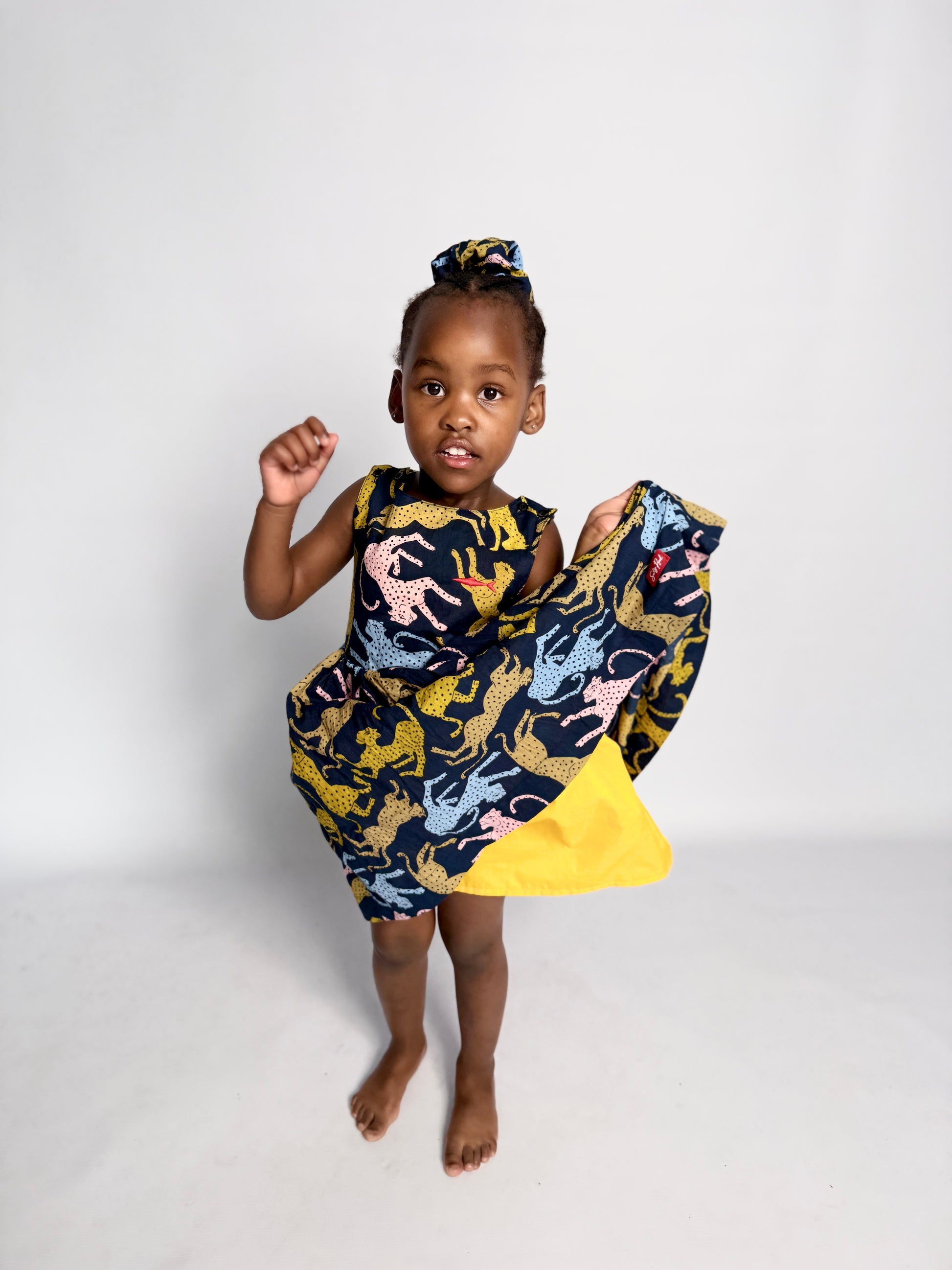 Girls Criss Cross back Dress - Cheetah on Navy